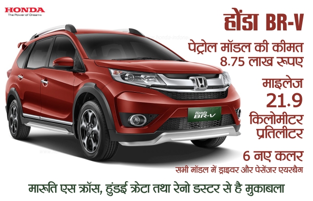 Honda BR-V कार की कीमत पेट्रोल मॉडल के लिए 8.75 लाख रूपए से लेकर 11.99 लाख रूपए (एक्स शोरूम दिल्ली) के बीच रखी गई है। फीचर्स के अनुसार इसके पेट्रोल वर्जन के पांच वैरियंट पेश किये गये हैं। जबकि डीजल वर्जन की कीमत 9.90 लाख रूपए से लेकर 12.90 लाख रूपए (एक्स शोरूम दिल्ली) के बीच रखी गई है। वहीं, इसके ऑटोमैटिक वर्जन की कीमत 11.99 लाख रूपए (एक्स शोरूम दिल्ली) रखी गई है। अपने सेगमेंट इस एसयूवी कार की सीधी टक्कर मारूति एस क्रॉस, हुंडई क्रेटा तथा रेनो डस्टर से है।