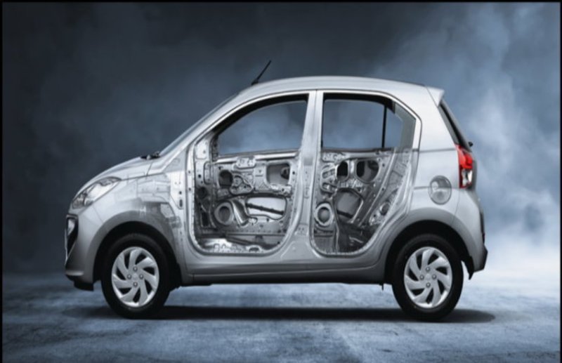 Santro में नए K1 प्लेटफार्म का इस्तेमाल किया गया है। ये प्लेटफार्म Kia के SA आर्किटेक्चर पर आधारित है और ये पिछले प्लेटफॉर्म्स के मुकाबले 63% ज्यादा सख्त है। ये गाड़ी को बेहतर क्रैश सेफ्टी टेस्ट रेटिंग हासिल करने में मदद करेगा और कार्स अपकमिंग BNSVAP मानकों का पालन कर पाएंगी।