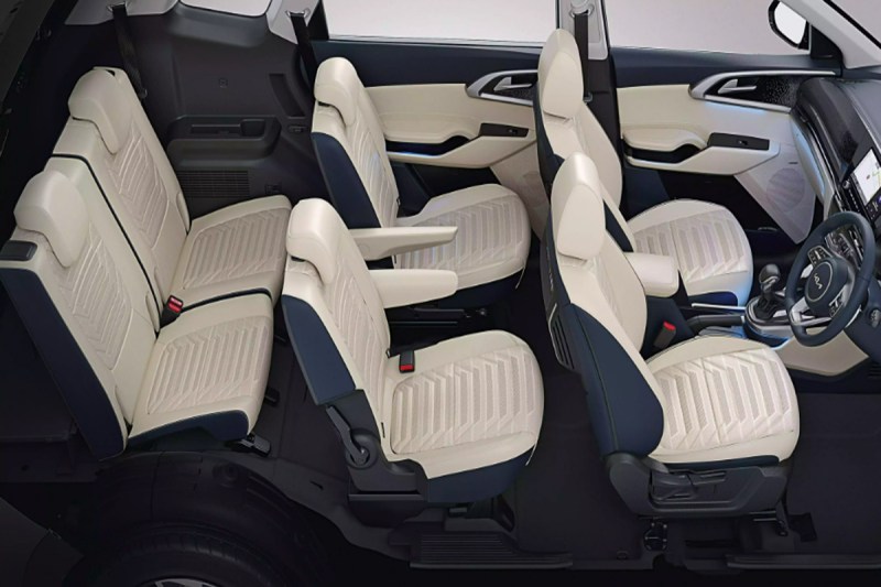 फीचर्स के तौर पर इस कार में 8 इंच का ट्चस्क्रीन इंफोटेंमेंट सिस्टम दिया गया है जो कि एप्पल कार प्ले और एंड्रॉयड ऑटो से कनेक्ट कर सकते हैं। इसमें हाइट एड्जेस्टेबल ड्राइविंग सीट, स्टीयरिंग माउंटेड कंट्रोल, दूसरी और तीसरी पंक्ति के लिए एसी वेंट्स, डिजिटल इंस्ट्रमेंट क्लस्टर, पुश बटन स्टार्ट-स्टॉप, इलेक्ट्रॉनिक ब्रेकफोर्स डिस्ट्रीब्यूशन (EBD) के साथ एंटी लॉक ब्रेकिंग सिस्टम (ABS), डुअल फ्रंट एयरबैग, सीट बेल्ट रिमाइंडर, रियर पार्किंग सेंसर जैसे फीचर्स मिलते हैं। इसके थर्ड रो यानी कि तीसरी पंक्ति में डिटैचेबल सीट्स मिलते हैं, जिसे जरूरत पड़ने पर हटाया जा सकता है।