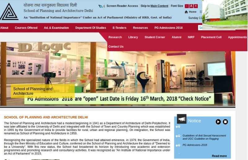 SPA New Delhi PG Admission 2018 : स्कूल ऑफ लानिंग एंड आर्किटेक्चर (एसपीए), नई दिल्ली ने अपने मास्टर्स प्रोग्राम्स में एडमिशन के लिए इच्छुक आवेदकों से आवेदन मंगवाए हैं। यह आवेदन शैक्षणिक सत्र 2018 के लिए आमंत्रित किए गए हैं। सभी पीजी कोर्सेज में एडमिशन के लिए आवेदकों को टेस्ट/इंटरव्यू पास करना होगा। प्रोग्राम में एडमिशन के लिए इच्छुक आवेदक 16 मार्च 2018 तक अप्लाई कर सकते हैं।