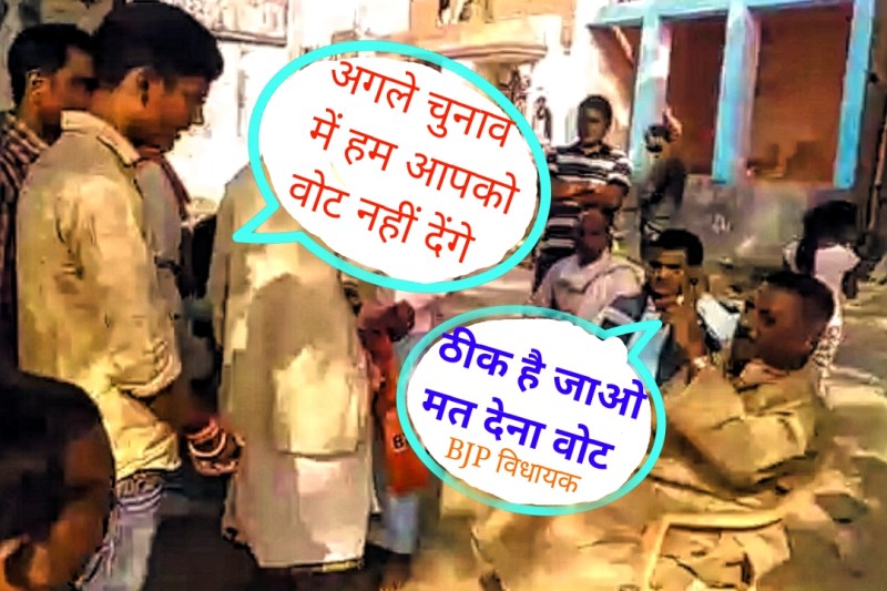 चंदौली . एससी/एसटी एक्ट का भूत भाजपाइयों के पीछे हाथ धोकर पड़ गया है। हालत यह कि गांव-गांव भाजपा को इसके चलते सवालों और विरोध का सामना करना पड़ रहा है। इस बार बीजेपी के विधायक को यह सवाल इतना परेशान कर गया कि वह आपा खो बैठे। उन्होंने सवाल दागने वाले सवालों को यहां तक कह दिया कि जाओ मुझे वोट मत देना। इस पूरी घटना का वीडियो वायरल हो गया, जिसके बाद विधायक का विरोध शुरू हो गया है और सवर्ण संगठन ने भी इसकी निंदा की हैै।