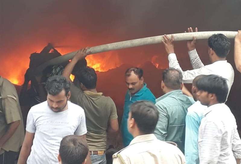 आग बुझाने के प्रयास में कंपनी के दो कर्मचारी भी झुलस गए, जिन्हें नजदीक के निजी अस्पताल पहुंचाया गया