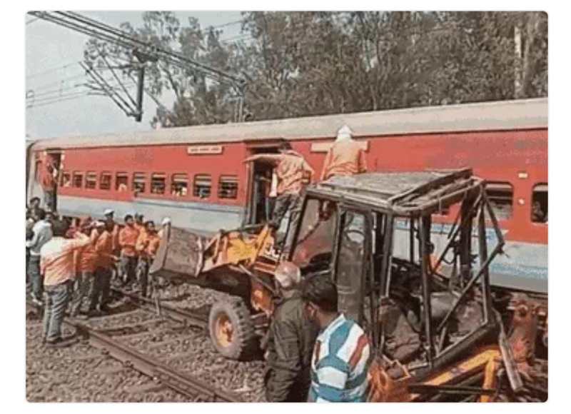 बाल बाल बची लोकमान्य तिलक एक्सप्रेस, ट्रैक क्रॉस कर रही JCB से भीषण टक्कर