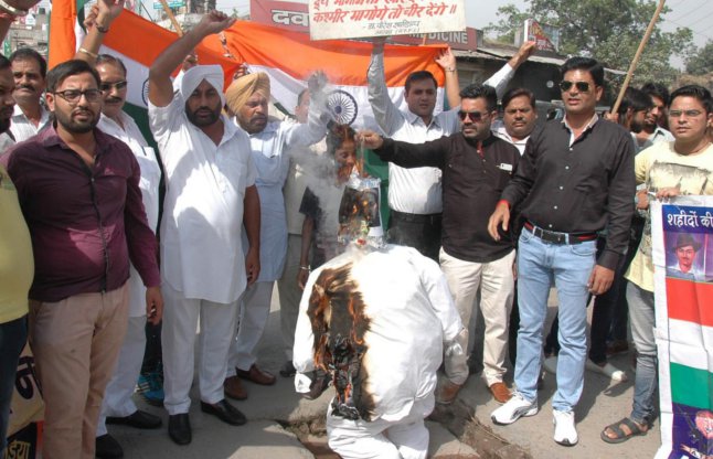 अम्बाला। एंटी टेररिस्ट फ्रंट इंडिया ने पठानकोट में हुए पाक आतंकी हमले के विरोध में जगाधरी गेट के समीप जैश-ए-मोहम्मद एवं लश्कर-ए-तोयबा का पुतला जलाया और पाकिस्तान के विरुद्ध नारेबाजी की।