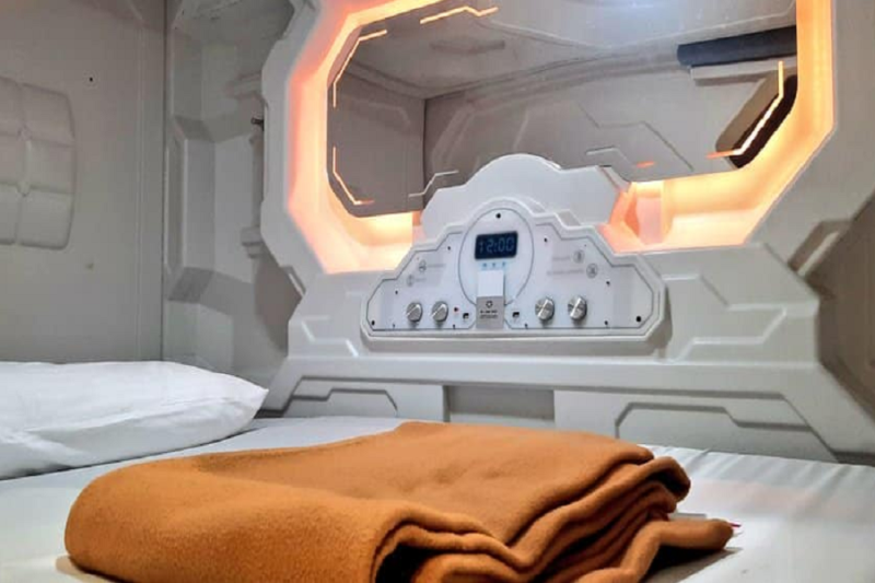 पॉड होटल में रीडिंग लाइट, चार्जिंग स्टेशन, यूएसबी चार्जर, लगेज स्पेस, एंबियंट लाइट और ब्लोअर कंट्रोल और एक आलीशान बिस्तर है। अधिकारियों के अनुसार प्रत्येक कैप्सूल में एक व्यक्ति (और 12 वर्ष से कम उम्र का बच्चा) आराम कर सकते है।