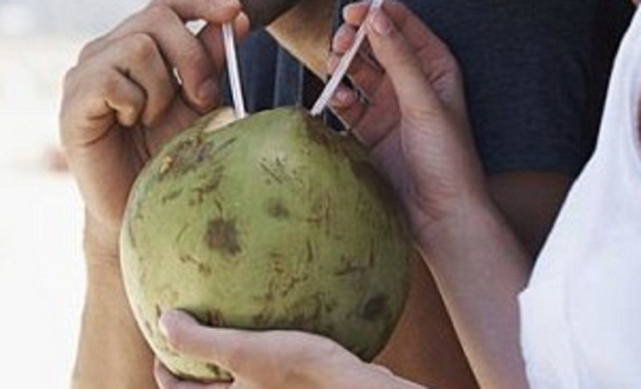 स्ट्रा की जगह लकड़ी की पाइप का इस्तेमाल कर रहे नारियल पानी विक्रेता