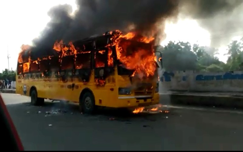 College bus cought fire in Chennai: Bus Fire, Perunglatur bus incident