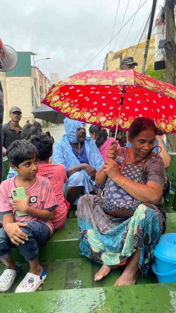 भारतीय सेना की “12 मद्रास” यूनिट ने मुग़वलीवाक्कम् और मणपाक्कम इलाक़े में बारिश के जल जमाव की वजह से घरों में फँसे लोगों को सुरक्षित नावों में निकाला।
