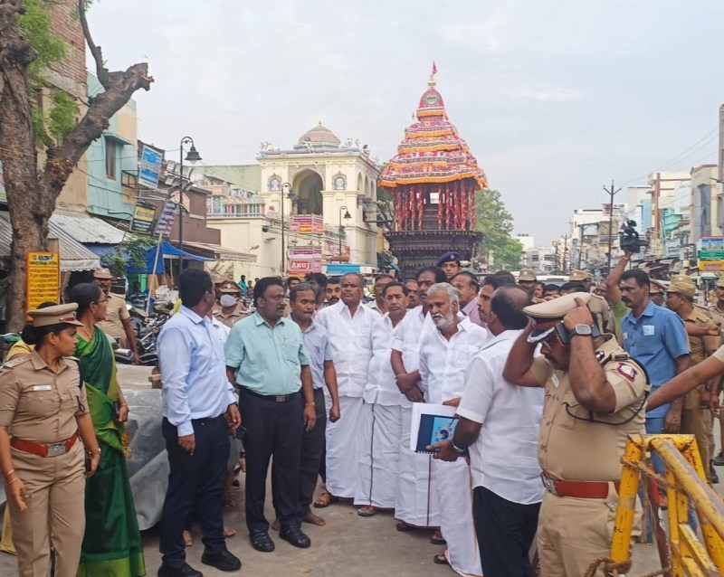 जुलूस के दौरान भक्तों ने पूरी तरह सजी हुई लकड़ी की कारों को खींचकर उत्सव मनाया, जिसमें एक कार में भगवान सुंदरेश और देवी मीनाक्षी की मूर्तियां विराजित की गई और दूसरी कार में देवी मीनाक्षी की प्रतिमा विराजित कर पूर्वी मासी सडक़ से हर हर शंकर, मीनाक्षी सुंदरा का जाप करते हुए जुलूस निकाला गया। यात्रा की व्यवस्था के लिए हजारों पुलिसकर्मियों की ड्यूटी लगाई गई। इसके अलावा जुलूस में लकड़ी की छोटे कारों में भगवान विनायग, भगवान मुरुगन और भगवान नयनमार्स की प्रतिमाएं विराजित थी। तमिल महीने चित्तिरै में मनाए जाने वाले कार उत्सव में राज्य के विभिन्न हिस्सों से भक्त पहुंचते हैं।