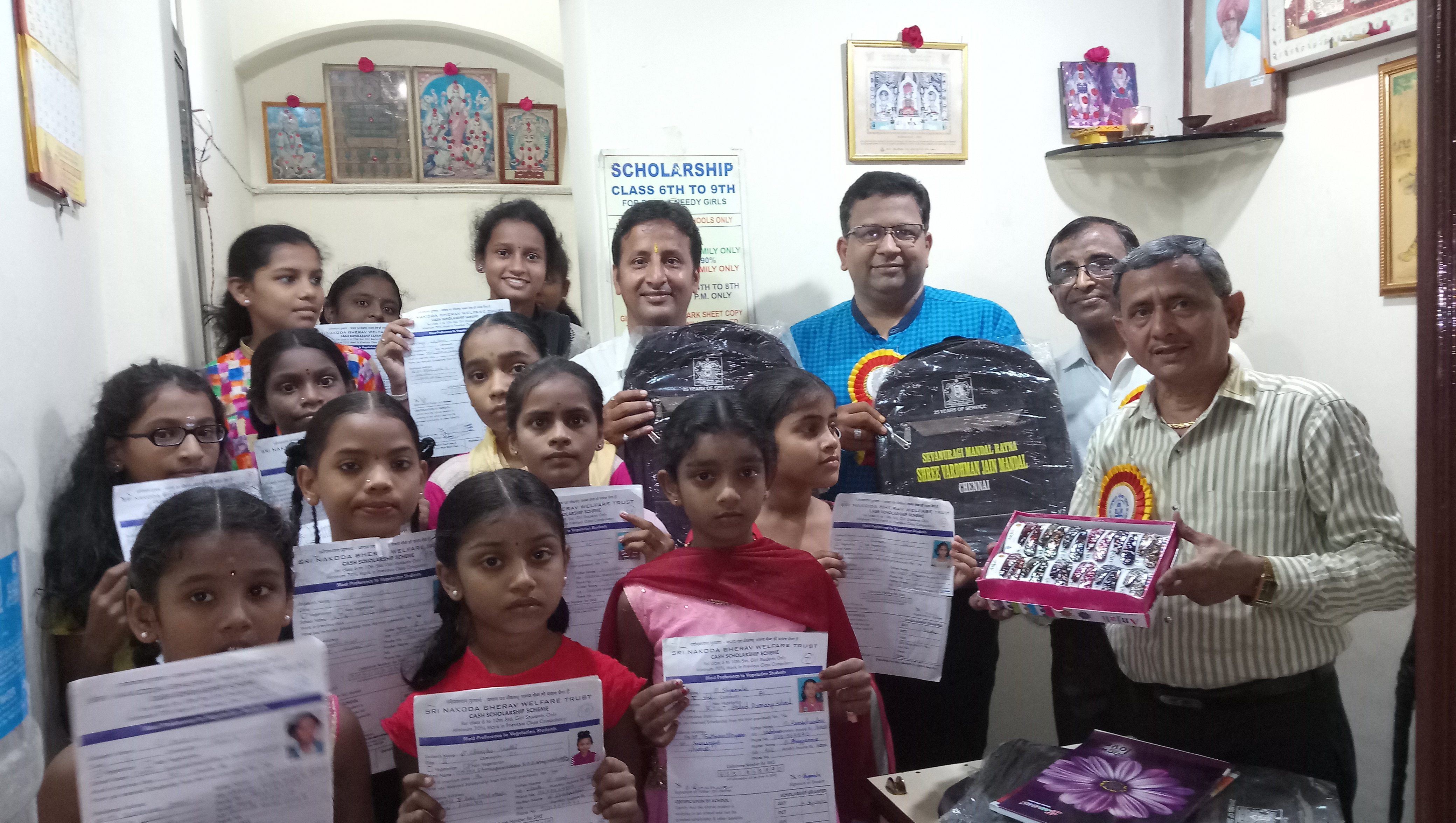चेन्नई. बेटी पढ़ाओ अभियान के तहत श्री नाकोड़ा भैरव सेवा ट्रस्ट एवं सेवानुरागी श्री वर्धमान जैन मंडल चेन्नई के संयुक्त तत्वावधान में रविवार को जरूरतमंद प्रतिभावान छात्राओं में छात्रवृत्ति वितरित की गई। ट्रस्ट के संस्थापक हीराचंद कांकरिया के नेतृत्व में महानगर के विभिन्न विद्यालयों की कक्षा 6 से 9 तक की चयनित छात्राओं को नगद छात्रवृत्ति के अलावा स्कूलबैग एवं अन्य उपयोगी सामान भी दिया गया। इस वर्ष के द्वितीय चरण के इस छात्रवृत्ति वितरण के दौरान उम्मेदमल जैन, दिनेश साकरिया, रजनीश, गोपी, हर्षित, कार्तिक जैन आदि के अलावा दोनों संस्थाओं के कई सदस्य मौजूद रहे। तृतीय चरण की छात्रवृत्ति का वितरण जनवरी में किया जाएगा।