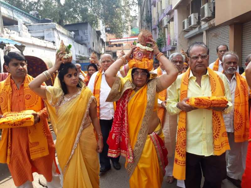 चेन्नई. अखिल विश्व गायत्री परिवार शांतिकुंज हरिद्वार से वरिष्ठ कार्यकर्ताओं की मंडली द्वारा माहेश्वरी भवन में इस युग की अमृत ज्ञानगंगा पंडित श्रीराम शर्मा आचार्य की लेखनी से श्रीमद पावन प्रज्ञा पुराण कथा ज्ञानयज्ञ एवं 9 कुंडीय गायत्री महायज्ञ हो रहा है। 10 अक्टूबर से शुरू हुआ यह कार्यक्रम 18 अक्टूबर तक चलेगा। नारायण मुदली स्ट्रीट गायत्री मंदिर से भव्य कलश शोभायात्रा का पूजन करके माहेश्वरी समाज के प्रमुख प्रमोद मालपानी माहेश्वरी सत्संग समिति के जीवन सिंह मोहता एवं तारा सिंह मेहता ने विशेष पूजन कर भव्य कलश यात्रा समुद्र स्ट्रीट से होकर मिंट स्ट्रीट से होकर माहेश्वरी भवन पहुंची जहां अखंड दीपक प्रचलित किया गया।