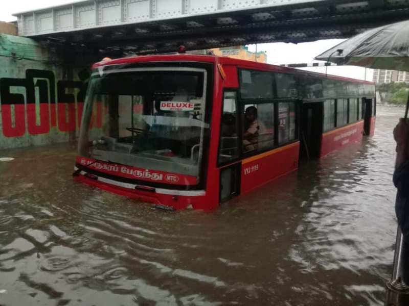 ग्रेटर चेन्नई कार्पोरेशन आयुक्त गगनदीप सिंह बेदी ने बताया कि रात के वक्त अचानक बारिश के रौद्र रूप से जलजमाव की स्थिति बनी है। अंडरपास पर पानी की मोटर लगाकर पम्पिंग का काम किया जा रहा है। बारिश रुक जाती है तो स्थिति बेहतर हो जाएगी। दूसरी ओर दमकल विभाग के दस्ते सडक़ों पर गिरे पेड़ हटाने के कार्य में सक्रिय दिखाई दिए।