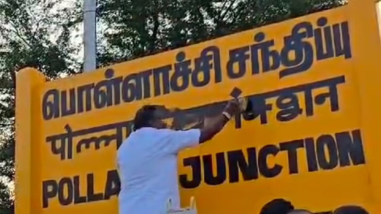 कोयम्बत्तूर/पोल्लाची. तमिलनाडु में हिंदी विरोध की आंच अब रेलवे स्टेशनों तक पहुंच गई है। कोयम्बत्तूर के निकट पोल्लाची रेलवे स्टेशन पर रविवार को हिंदी विरोधी प्रदर्शन हुआ। प्रो-तमिल प्रदर्शनकारियों ने रेलवे स्टेशन के साइनबोर्ड पर लिखे हिंदी शब्दों को काले रंग से पोत दिया। घटना सुबह 7:25 बजे हुई। डीएमके कार्यकर्ताओं ने कथित तौर पर हिंदी भाषा को थोपने के विरोध में स्टेशन पर तीन नाम बोर्डों पर लिखे हिंदी अक्षरों पर काले रंग का ग्रीस ऑयल पोत दिया। सोशल मीडिया पर इस घटना का वीडियो वायरल हुआ, जिसमें आरपीएफ का एक अधिकारी प्रदर्शनकारियों को रोकने की कोशिश करता दिखा। घटना के बाद, दक्षिण रेलवे के पलक्कड़ डिवीजन के अधिकारियों ने सफाई दी कि नाम को तुरंत रीस्टोर कर दिया गया। रेलवे ने कहा, "आरपीएफ पोल्लाची ने आरोपियों की पहचान कर ली है और रेलवे एक्ट के तहत उनके खिलाफ मामला दर्ज किया गया है।