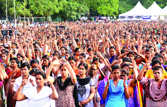 आयोजित योगासन कार्यक्रम में पांच हजार से अधिक लोगों ने योगासन किया जिनमें