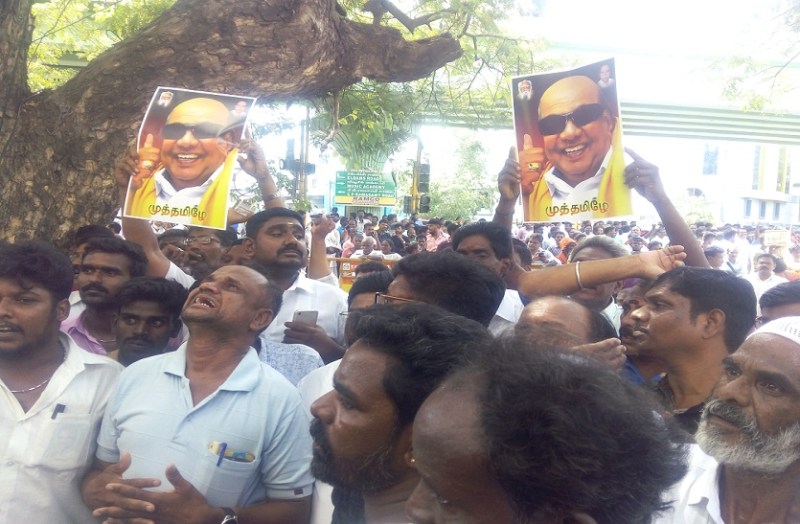 डीएमके अध्यक्ष एम. करुणानिधि की रविवार रात बिगड़ी सेहत की खबर आने के बाद जिले के एण्णूर व पल्लीपट्टू निवासी दो जनों ने एक के बाद एक खुदकुशी कर ली। उधर, ईरोड जिले में इसी वजह से एक महिला समेत दो जनों की दिल का दौरा पडऩे से मृत्यु हो गई।