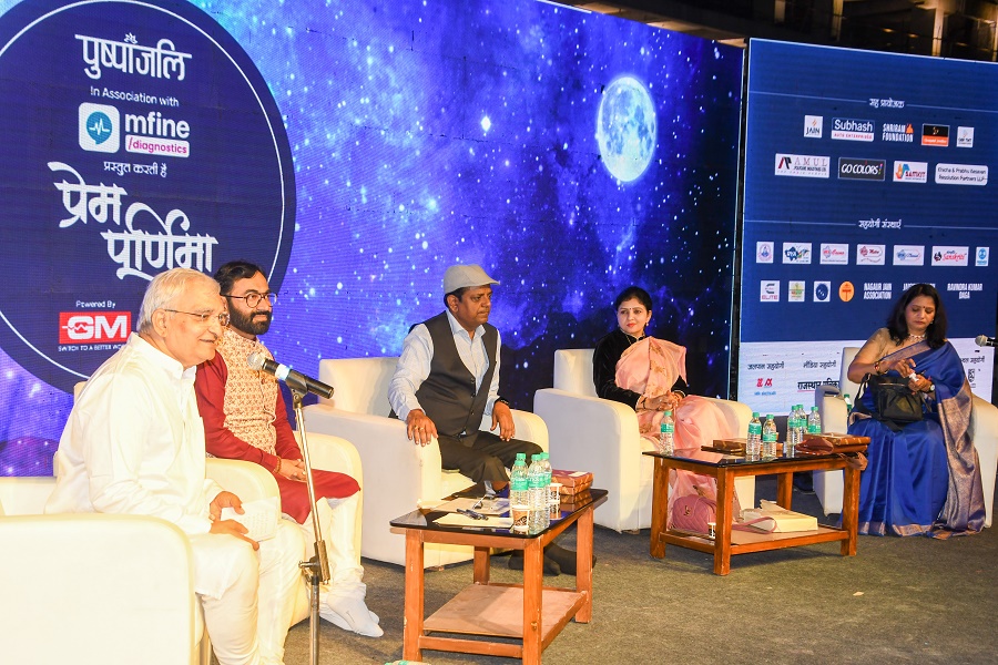इसके बाद कार्यक्रम के संयोजक व संचालक गोविन्द मूंदड़ा ने अपना पहला प्रेम गीत दिल में मेरे बसी हुई है ऐसे तेरी सूरत, जैसे बसती है मंदिर में पावन कोई मूरत, तुम्हें साथ ना पाकर अक्सर मन धीरज खोता है, प्यार यही होता है प्रीतम प्यार यही होता है, सुनाकर सबको भाव-विभोर कर दिया। कार्यक्रम में देश के प्रसिद्ध रेखांकनकार संदीप राशिनकर को पुष्पांजलि कला सम्मान प्रदान किया गया। कार्यक्रम का संचालन गोविन्द मूंदड़ा ने व धन्यवाद ज्ञापन गिरिराज मूंदड़ा ने किया।