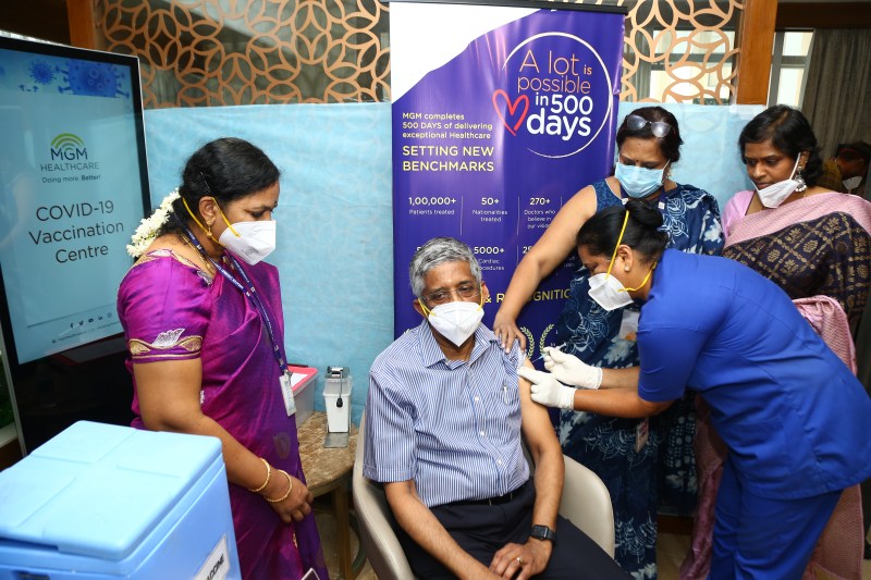 एमजीएम हेल्थकेयर ने देश के सबसे बड़े कोविड 19 टीकाकरण कार्यक्रम की शुरुआत की। तमिलनाडु को इसके लिए वैक्सीन का 5,36,500 डोज दिया गया है। तमिलनाडु सरकार ने एमजीएम हेल्थकेयर को टीकाकरण साइट के रूप में मंजूरी दी है। हास्पिटल को वैक्सीन का 250 डोज दिया गया है। हास्पिटल के निदेशक डा.प्रशांत राजगोपालन ने कहा कि हमने कोरोना के एक हजार रोगियों का इलाज किया है। अब कोविड वैक्सीन देना हमारे लिए एक भावनात्मक क्षण है। इस राष्ट्रव्यापी टीकाकरण कार्यक्रम से स्वास्थ्य कर्मियों एवं आम आदमी में कोरोना के नए मामलों में कमी आएगी। सीईओ हरीश मनियन ने कहा कि अगले कुछ महीनों में 3 करोड़ हेल्थकेयर एवं फ्रंट लाइन वर्कर को टीका दिया जाएगा। इसके बाद 50 साल से अधिक की उम्र के लोगों को टीका दिया जाएगा। उसके बाद उन लोगों को टीका दिया जाएगा जो 50 साल से कम की उम्र के हैं और किसी न किसी बीमारी से ग्रसित हैं। देश भर में एक दिन में 3,000 केंद्रों पर तीन लाख स्वास्थ्य कर्मियों को टीका दिया जाएगा। टीकाकरण के बाद भी लोगों को सलाह दी जा रही है कि वे नियमित हाथ धोएं, मास्क पहनें एवं फिजिकल डिस्टेंसिंग कायम रखें। जिन डाक्टरों ने शनिवार को टीका लिया उनमें डा.विश्वनाथन मोहन एवं डा.वी मोहन शामिल थे।