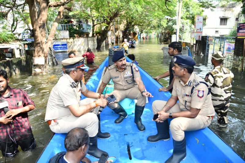 VIDEO: चेन्नई पुलिस कमिश्नर संदीप राठौड़ ने नाव से बाढ प्रभावित इलाकों का किया निरीक्षण
