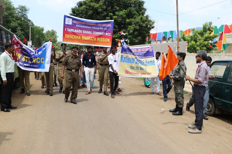 श्रमदान करते हुए महाविद्यालय के एनसीसी कैडेटों ने इलाकों से लगभग 41 बोरा कचरा निकालकर उसका निपटान किया। इस स्वच्छता जागरूकता रैली को महाविद्यालय के प्रधानाचार्य डॉ. एन. वेंकटारमनन एवं तांबरम स्थित तमिलनाडु सिग्नल कंपनी एनसीसी-1 के कमान अधिकारी लेफ्टिनेंट कर्नल एस. शशिधर ने रवाना किया। इस जागरूकता रैली में 63 एनसीसी कैडेट, 48 एनएसएस के स्वयं सेवक, 18 अन्य विद्यार्थियों के अलावा महाविद्यालय के 6 शैक्षणिक कर्मचारियों ने भी भाग लिया। इस आयोजन का उद्देश्य लोगों को स्वच्छता के प्रति जागरूक करना था। रैली के दौरान विद्यार्थियों ने अपने हाथ में पोस्टर-बैनर लेकर नारेबाजी भी की।