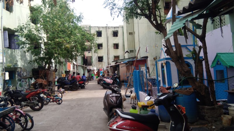 महानगर में कच्ची बस्तियों में से एक है संतोष नगर। ईवीआर पेरियार सालै के सामने राजा अण्णामलै ब्रिज के पश्चिमी हिस्से में बसी यह बस्ती करीब ४५ साल पुरानी है और इसमें करीब १००० घर हैं। इनमें से २५० परिवारों को तो हाउसिंग बोर्ड द्वारा स्लम बोर्ड अलॉटमेंट योजना के तहत यथास्थान जमीन अलॉट कर दी गई लेकिन बाकी अभी तक अलॉटमेंट के लिए तरस रहे हैं। इनको जमीन नहीं मिलने का मूल कारण यह है कि जिस जमीन पर ये बसे हैं वह जमीन मंदिर की है। परेशानी यह है कि सरकार इनको जहां जमीन देती है वहां ये जाना नहीं चाहते और मंदिर प्रशासन इनको यह जमीन देने को तैयार नहीं है।