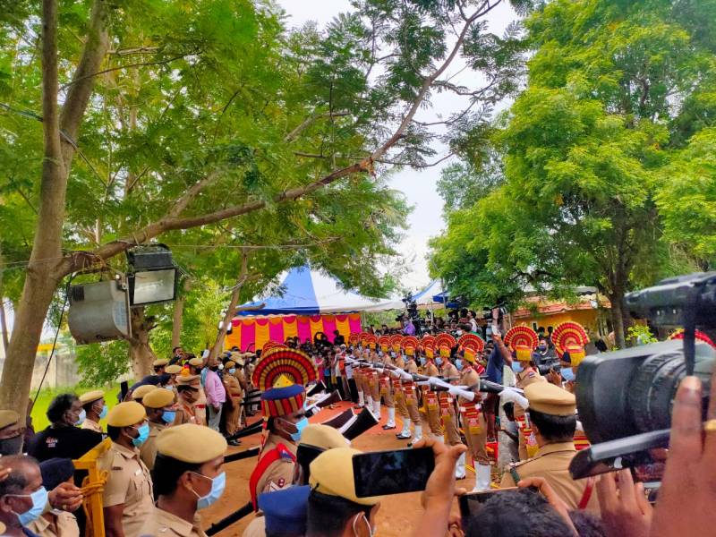 अपनी मखमली आवाज से पांच दशक तक लाखों दिलों पर राज करने वाले दिग्गज गायक एसपी बालसुब्रमण्यम को पूरे सम्मान के साथ शनिवार को अंतिम विदाई दे दी गई। गायक के तिरुवल्लूर जिले के तामरैपाक्कम स्थित फार्म हाउस पर तमिलनाडु पुलिस द्वारा 24 बंदूकों की सलामी के साथ उन्हें अंतिम विदाई दी गई। इस दौरान उनके परिवार के सदस्य और संबंधित व्यक्तियों के अलावा कई सारे प्रशंसक भी मौजूद नजर आए जो उनकी एक झलक पाने को बेताब थे।