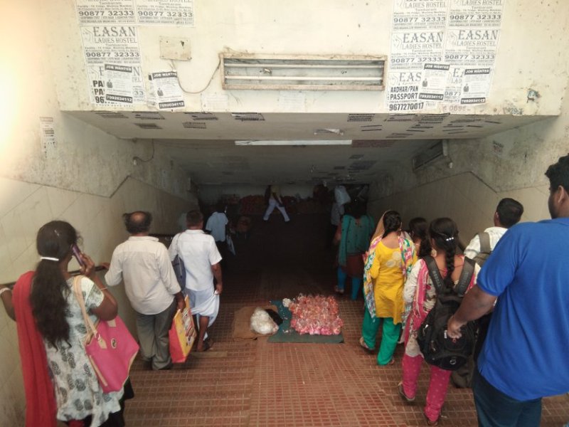 पीक आवर्स में इस सब-वे से होकर पैदल निकलना आसान नहीं होता। दोनों ही तरफ दुकानें सजी होने के कारण पैदल यात्रियों के आने-जाने के लिए लगभग नहीं के बराबर जगह बचती है। भीड़ के चलते कई बार तो राहगीर एक दूसरे ऊपर गिर भी जाते हैं। आर. श्रीनिवासन, पैदल यात्री तांम्बरम निवासी।