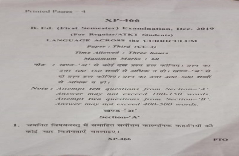 शुक्रवार को महाराजा कॉलेज व लॉ कॉलेज में कुल 2300 छात्र-छात्राओं ने बीएड फस्र्ट सेमेस्टर का तीसरा थ्योरी पेपर लैग्वेज एक्रॉस द क्यूरिकुलम का दिया। परीक्षा हाल में 60 अंको का प्रश्नपत्र दिया गया, जबकि तय मानक के अनुसार 35 अंक का थ्योरी का है। सेशनल में 15 अंक मिलाकर थर्ड पेपर कुल 50 अंकों का होता है। लेकिन शुक्रवार को हुए पेपर में थ्योरी का पेपर ही 60 अंक का दे दिया गया। इससे बीएड फस्र्ट सेमेस्टर परीक्षा का पूर्णांक ही बदल गया, जिससे रिजल्ट पर असर पडऩे की आशंका को देखते हुए छात्र-छात्राएं चिंतित हैं।