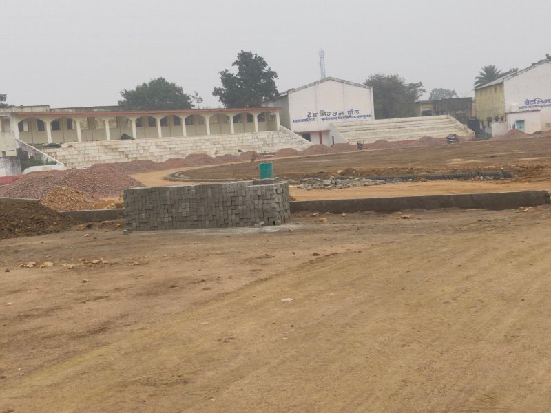 स्टेडियम में चल रहा निर्माण कार्य
