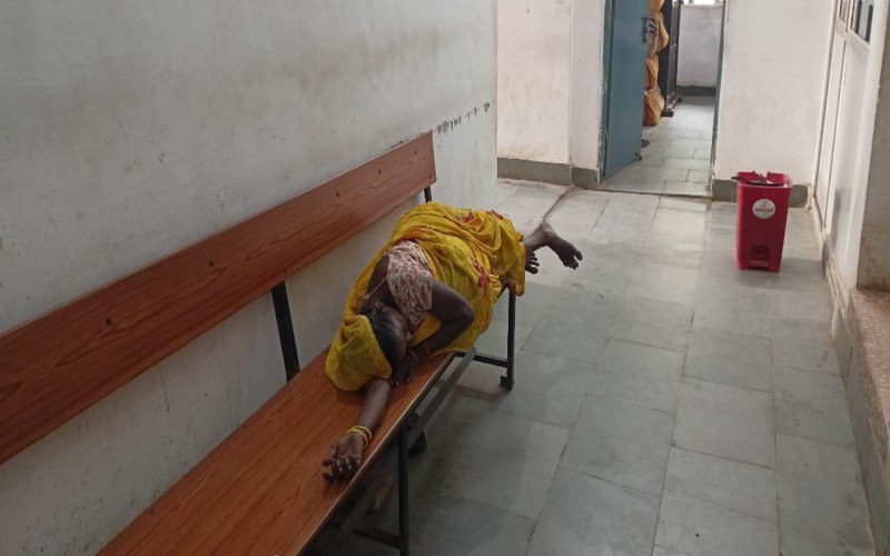 पेट में सात किग्रा से अधिक का ट्यूमर, पैर में पट्टी बांधे महिला हीराबाई अपने काम से तहसीली में आई। घंटे भर कार्यालय के बाहर बैठने के बाद जब शरीर ने साथ नहीं दिया तो कार्यालय के अंदर बिछी एक बेंच पर लेट गई। हैरानी की बात यह है कि बाजू में ही तहसीलदार का कार्यालय है वे भी इस बात को नजरअंदाज कर गए।