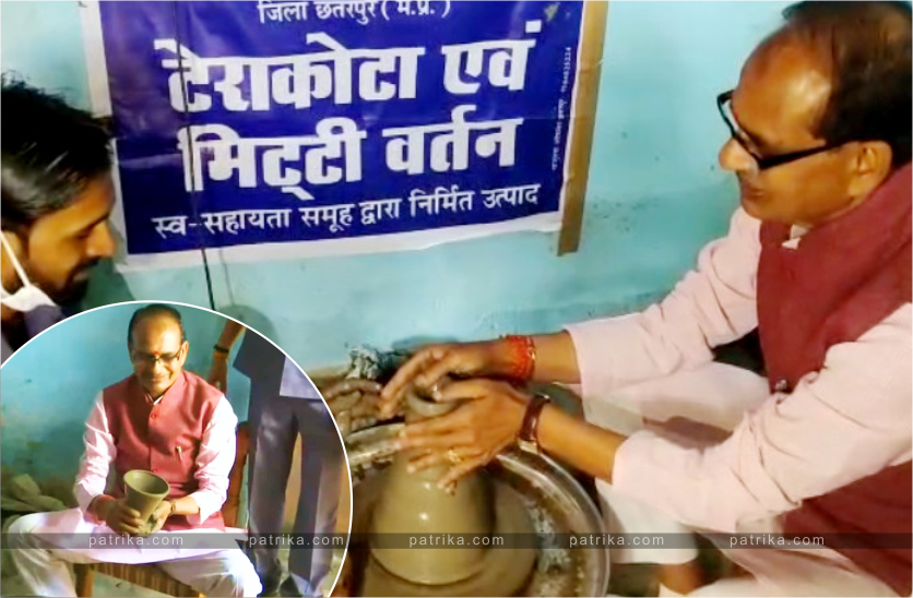 प्रदेश के मुखिया शिवराज सिंह चौहान ने छतरपुर जिले के ग्राम धमना में नेराम प्रजापति के घर मिट्टी के हस्तनिर्मित उत्पादों को देखा और खुद चाक पर मिट्टी का दीया व कुल्हड़ बनाया। सीएम ने धमना के पंचायत भवन में ग्रामीण जनों से संवाद कार्यक्रम में भी शामिल हुए।
