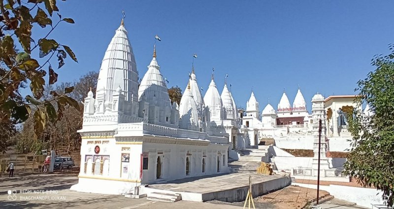 पहाड़ी पर क्षेत्र का पहला मन्दिर सुपाŸवनाथ का कांच की अद्भुत सजावट से बना खूबसूरत मन्दिर है। दूसरा मन्दिर चंद्रप्रभु का है। तीसरा मन्दिर महत्वपूर्ण सात फनी पाŸवनाथ का है। चौथा मन्दिर आदिनाथ का है। पांचवां, छटा और सातवा मन्दिर तीन मंदिरों का एक समूह है जिसमें अजीत नाथ, आदिनाथ और पाŸवनाथ की प्रतिमाएं हैं। अन्य मंदिरों में शीतल नाथ जी, रसोइयन बाई की मरिया जो पाŸवनाथ मन्दिर है। उसके बाद नेमीनाथ एवं मंदिरों की श्रृंखला हैं। त्रिकाल चौबीसी का स्थापत्य एवं सुंदरता दर्शनीय है। इसमें बड़े हाल में तीन खडग़ासन मुद्रा की प्रतिमाएं स्थापित हैं एवं दो अलग - अलग मंजिलों पर त्रिकाल चौबीसी तीर्थंकरों की खड़ी मुद्रा में प्रतिमाएं बनाई गई हैं। इसके ऊपरी मंजिल पर शिक्षा के प्रसार को समर्पित गुरुदत्त मुनि की विशाल प्रतिमा है। त्रिकाल चौबीसी के सामने आकर्षक एवं कलात्मक कीर्ति स्तम्भ और लाल पाषाण से निर्मित चार तोरण द्वारों युक्त मान स्तम्भ है जिसके चारों ओर 12 तीर्थंकरों की प्रतिमाएं बनाई गई हैं।