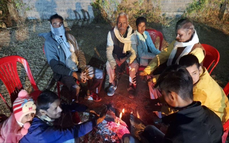 ठंड से बचाव के लिए अलाव सेंकते लोग