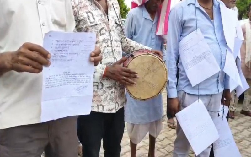 किसानों का आरोप है कि खेतों के बीच बने शासकीय आम रास्ते पर कब्जा कर लिया गया है, जिससे उनकी आवाजाही बाधित हो रही है। कई बार आवेदन देने के बावजूद कोई कार्रवाई न होने से नाराज किसानों को मजबूरन यह कदम उठाना पड़ा। महाराजपुर तहसील के सिंहपुर गांव से आए किसानों ने मंगलवार को छतरपुर में आयोजित जनसुनवाई में अपनी अनोखी शैली से सबका ध्यान खींचा। सैकड़ों किसानों ने गले में आवेदनों की माला पहनी और ढोलक बजाते हुए अपनी समस्या को अधिकारियों के समक्ष रखा। किसान मुन्ना राजपूत, प्रेमशंकर कुशवाहा, जय सिंह राजपूत आदि ने बताया कि उनके खेतों के बीच से निकलने वाली पुश्तैनी जमीन पर बना शासकीय आम रास्ता है, जिस पर पटवारी राजेंद्र प्रसाद राजपूत और उनके परिवार ने कब्जा कर लिया है। इस अतिक्रमण के कारण रास्ता पूरी तरह बंद हो गया है, जिससे किसानों को अपने खेतों तक पहुंचने में भारी परेशानी हो रही है। किसानों ने बताया कि इस मामले में कई बार प्रशासन को आवेदन दे चुके हैं, लेकिन उनकी सुनवाई नहीं हो रही है। मजबूरन उन्हें अपनी बात रखने के लिए आवेदनों की माला पहनकर और ढोलक बजाते हुए जनसुनवाई में आना पड़ा।