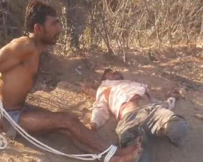 पिता के शव के पास रस्सियों से बंधा आरोपी बेटा