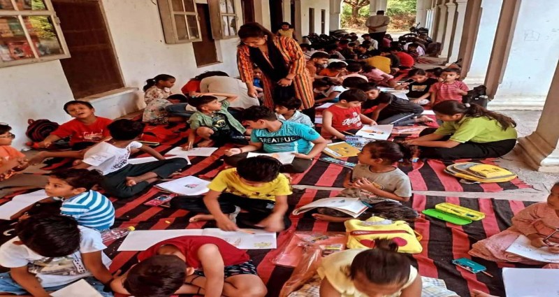 शिविर में पेंटिंग का हुनर निखारते बच्चे