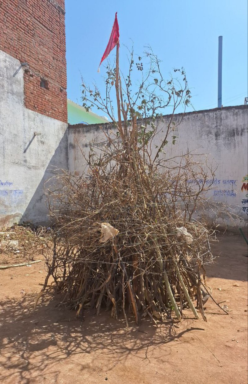 नरसिंहगढ़ पुरवा दहन के लिए तैयार की जा रही होलिका