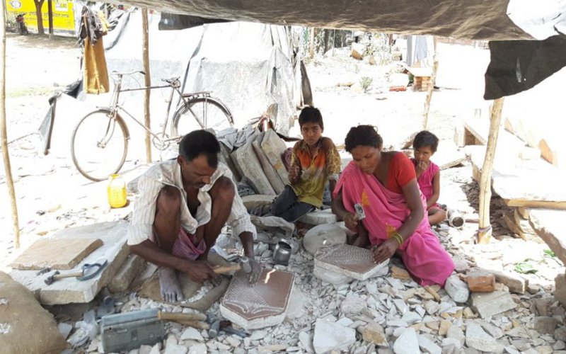 शहर के जवाहर मार्ग पर अशोक आदिवासी व उनकी पत्नी नीतू आदिवासी अपने बच्चों के साथ सिल टांकने का काम करते हैं। उनके चार बच्चे मां-बाप के साथ उनके काम में जितना बन सके, उतनी मदद कर रहे हैं। अशोक ने बताया कि सबसे छोटा बेटा 3 साल और सबसे बड़ा बेटा 14 साल का है, उनके परिवार का न तो मतदाता लिस्ट में नाम है, न ही उनके बच्चे पढ़ते हैं। 1 मई को पूरा परिवार सिल टांकने का काम कर रहा था, उन्हें इस बात का पता ही नहीं था कि आज का दिन उनके नाम समर्पित है। वे कहते हैं कि, मेहनत नहीं करेंगे तो परिवार का पेट कैसे पालेंगे?