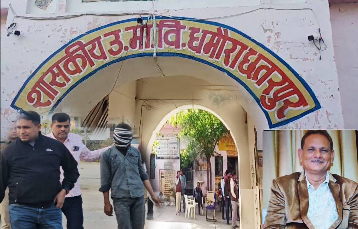 धमौरा गांव के हायर सेकेंडरी स्कूल में शुक्रवार की दोपहर करीब डेढ़ बजे उस वक्त सनसनी फैल गई जब स्कूल के प्रिंसिपल एसके सक्सेना की स्कूल के अंदर ही बाथरूम में गोली मारकर हत्या कर दी गई। हत्या करने वाला आरोपी स्कूल का ही 12वीं क्लास का छात्र है जिसकी तस्वीरें स्कूल में लगे सीसीटीवी कैमरों में कैद हुई थीं। जब प्रिंसिपल सक्सेना बाथरूम में गए तो आरोपी छात्र पीछे से बाथरूम में पहुंचा और पीछे से उनके सिर में गोली मार दी जिससे मौके पर ही प्रिंसिपल की मौत हो गई थी। प्रिंसिपल को गोली मारने के बाद आरोपी छात्र प्रिंसिपल के कमरे में गया और वहां पर तोड़फोड़ कर उनकी ही स्कूटी लेकर फरार हो गया था।