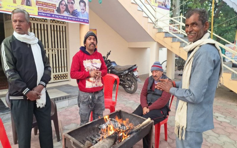 ठंड से बचाव के लिए दिन में भी अलाव सेंक रहे लोग