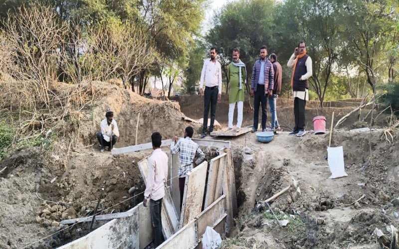 अटल भूजल योजना के तहत हरपालपुर इलाके में जलसंरक्षण के लिए निर्माण करते हुए