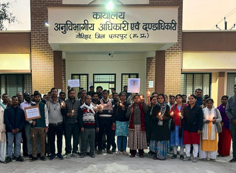 छतरपुर. धमौरा हायर सेकंडरी स्कूल के दिवंगत प्राचार्य को श्रद्धांजलि देकर ज्ञापन सौंपा गया। गौरिहार विकासखंड के शिक्षक परिवार ने इस जगह ने घटना की घोर निंदा करते हुए दिवंगत प्राचार्य को शहीद का दर्जा देने तथा शिक्षकों को सुरक्षा देने की मांग को लेकर स्थानीय शासकीय उच्चतर माध्यमिक विद्यालय से कैंडल मार्च निकाला,जो बस स्टैंड से होते हुए जनपद परिसर में स्थित एसडीएम कार्यालय के सामने सम्पन्न हुआ।