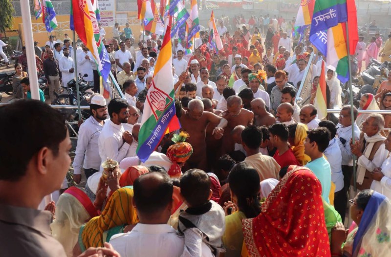छतरपुर। छतरपुर शहर में आचार्य विद्यासागर महाराज के शिष्य मुनि विनम्र सागर, मुनि निश्वार्थ सागर, मुनि निर्मद सागर, मुनि निसर्ग सागर, मुनि श्रवण सागर महाराज सहित पांच मुनि संघ का मंगल प्रवेश नगर में हुआ। इस दौरान सैकड़ों की संख्या में श्रद्धालु मुनि संघ की अगवानी करने नगर के प्रवेश द्वार पर पहुंचे, जिनमें महिलाऐं, पुरुष, बालक बालिकाओं सभी ने बढ़चढ़ कर श्रद्धा भाव से मुनि संघ का स्वागत वंदन किया। साथ ही महिलाओं और बालिकाओं ने जगह-जगह घरों के बाहर रंगोली बनाई और मुनि संघ का पाद प्रक्षालन किया।