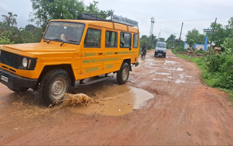 बारिश में सडक़ के गड्ढों में भरा पानी