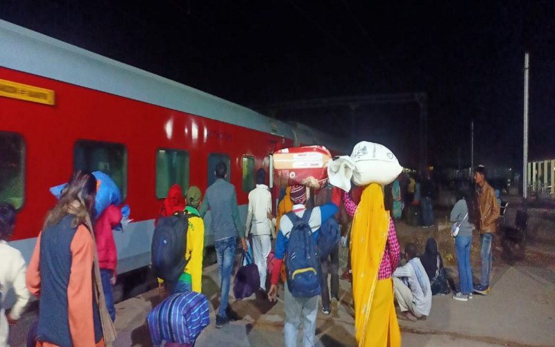 रेलवे स्टेशन से महानगर के लिए पलायन करते प्रवासी मजदूर