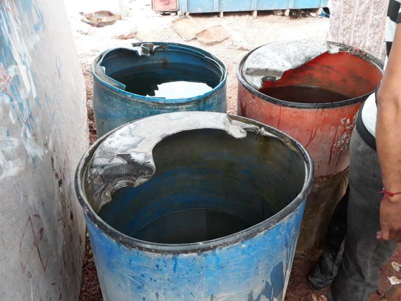 काई लगे गंदे ड्रमों में हैंडपंप से पानी भरकर पीते हैं मजदूर :