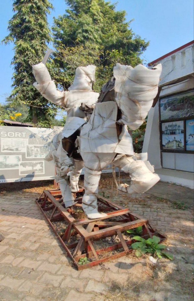 छतरपुर. मध्य प्रदेश पर्यटन विभाग की लापरवाही के कारण खजुराहो के कन्वेंशन सेंटर परिसर में स्थापित की गई लौह पुरुष सरदार वल्लभ भाई पटेल की आदम प्रतिमा और फैसिलिटी सेंटर में लगी महाराजा छत्रसाल की घोड़े पर सवार प्रतिमा का तीन साल से अनावरण नहीं हो सका है। इन प्रतिमाओं का अनावरण होने के इंतजार में इन्हें खुले आसमान के नीचे ढंककर रखा गया है। लगातार बारिश और तेज धूप के कारण इनकी हालत खराब हो रही है और इनकी चमक धीरे-धीरे खत्म होती जा रही है।