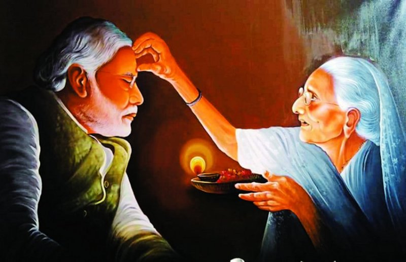 छतरपुर। प्रधानमंत्री नरेंद्र मोदी को देश के आम चुनाव में मिली ऐतिहासिक जीत के पहले ही शहर के एक कलाकार ने उनके विजय तिलक वाली अनोखी पेंटिंग बनाई है। यह पेंटिंग विशेष कलर और कैनवास पर बनाई गई है, जिसे गंदा होने पर धोया भी जा सकता है। यह पेंटिंग शहर के युवा कलाकार राजेश खरे संजू ने बनाई है। इस पेंटिंग को महज तीन दिन में तैयार करने वाले संजू ने बताया कि मतदान के बाद से ही उन्होंने इस बारे में सोच लिया था। क्योंकि देश में जैसी लहर थी, तो उससे लग रहा था कि मोदी जी एक बार फिर से प्रधानमंत्री बनेंगे। पेंटिंग में उन्होंने पीएम मोदी का राजतिलक करते हुए उनकी मां को दिखाया है। इस पेंटिंग को प्रधानमंत्री के शपथ समारोह में भेंट किया जाएगा। इस कलाकार चुनाव परिणाम आने के लगभग तीन-चार दिन पहले से ही पेंटिंग तैयार करना शुरू कर दिया था। जिसे देख कर हरकोई सराहना कर रहा है। उन्होंने बताया कि जब प्रधानमंत्री नरेंद्र मोदी शपथ ग्रहण करेंगे तो उन्हें हमारे द्वारा बनाई गई पेंटिंग भेंट करने का प्रयास करेंगे।