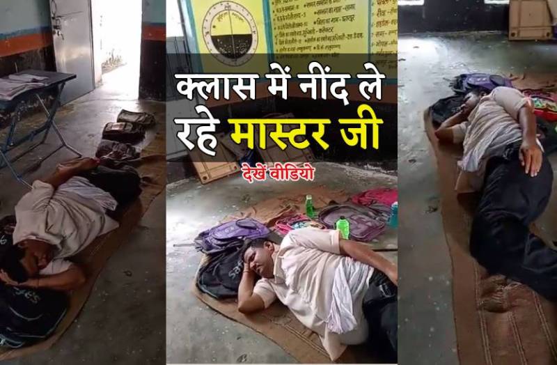 क्लासरूम में मास्टर जी का नींद लेते जो वीडियो वायरल हुआ है वो छतरपुर जिले के लवकुशनगर के प्राथमिक स्कूल बाजौरा है। करीब एक मिनिट के इस वीडियो में स्कूल में पदस्थ प्राधानाध्यापक राजेश कुमार अरजरिया एक क्लास रूम में पंखे के नीचे नींद लेते दिख रहे हैं। बच्चों के स्कूल बैग को प्राधानाध्यापक ने अपना तकिया बनाया हुआ है और बच्चों को बैठने के लिए बिछाई जाने वाली पट्टी पर वो सो रहे हैं। क्लास रूम में टीचर अरजरिया के अलावा कोई बच्चा नहीं है हालांकि बच्चों के क्लासरूम के बाहर खेलने की आवाजें जरुर आ रही हैं।