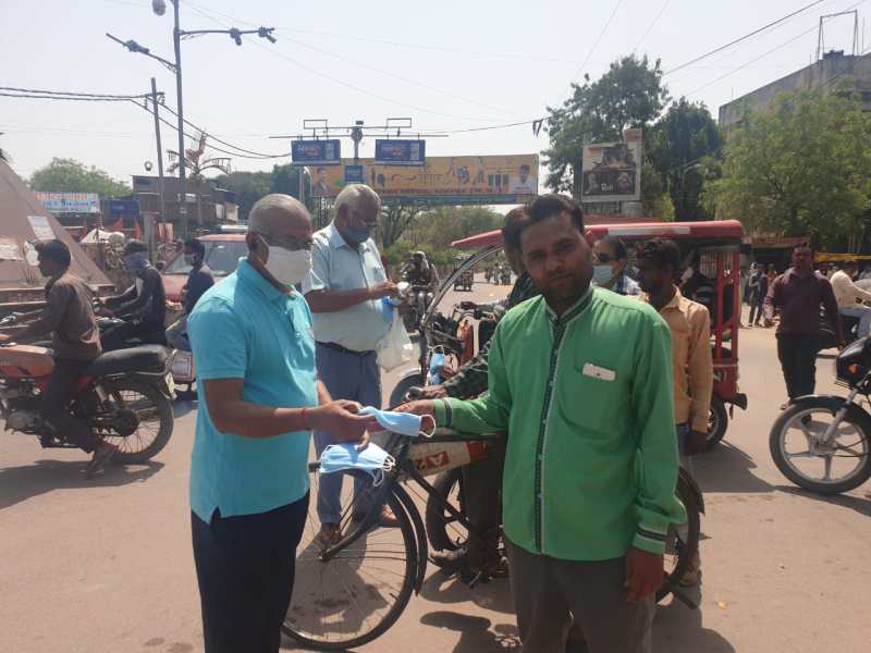 रविवार को ही दोपहर 12 बजे शहर के देरी तिराहे पर युवा व्यसायी जायका रेस्टोरेंट के संचालक धर्मेन्द्र खरे ने लोगों को मास्क बांटे। तिराहे पर बिना मास्क नजर आने वाले लोगों, दुकानदारों को मास्क देकर उन्हें मास्क पहनने के तरीके के बारे में भी बताया। उन्होंने लोगों को समझाइश भी दी कि मास्क गले में लटकाना गलत है। इसके बजाए सबसे अधिक सुरक्षित तरीका है मास्क नाक के उपर रहे। ऐसा नहीं करके हम कोरोना को आमंत्रण देते है। ये भी समझाया कि जब तक बेहद जरूरी नहीं हो चेहरे को हाथ नहीं लगाए। अगर लगाते है तो उसके पूर्व यह जरूरी है कि हाथ को सैनिटाइजर से साफ किया जाए।