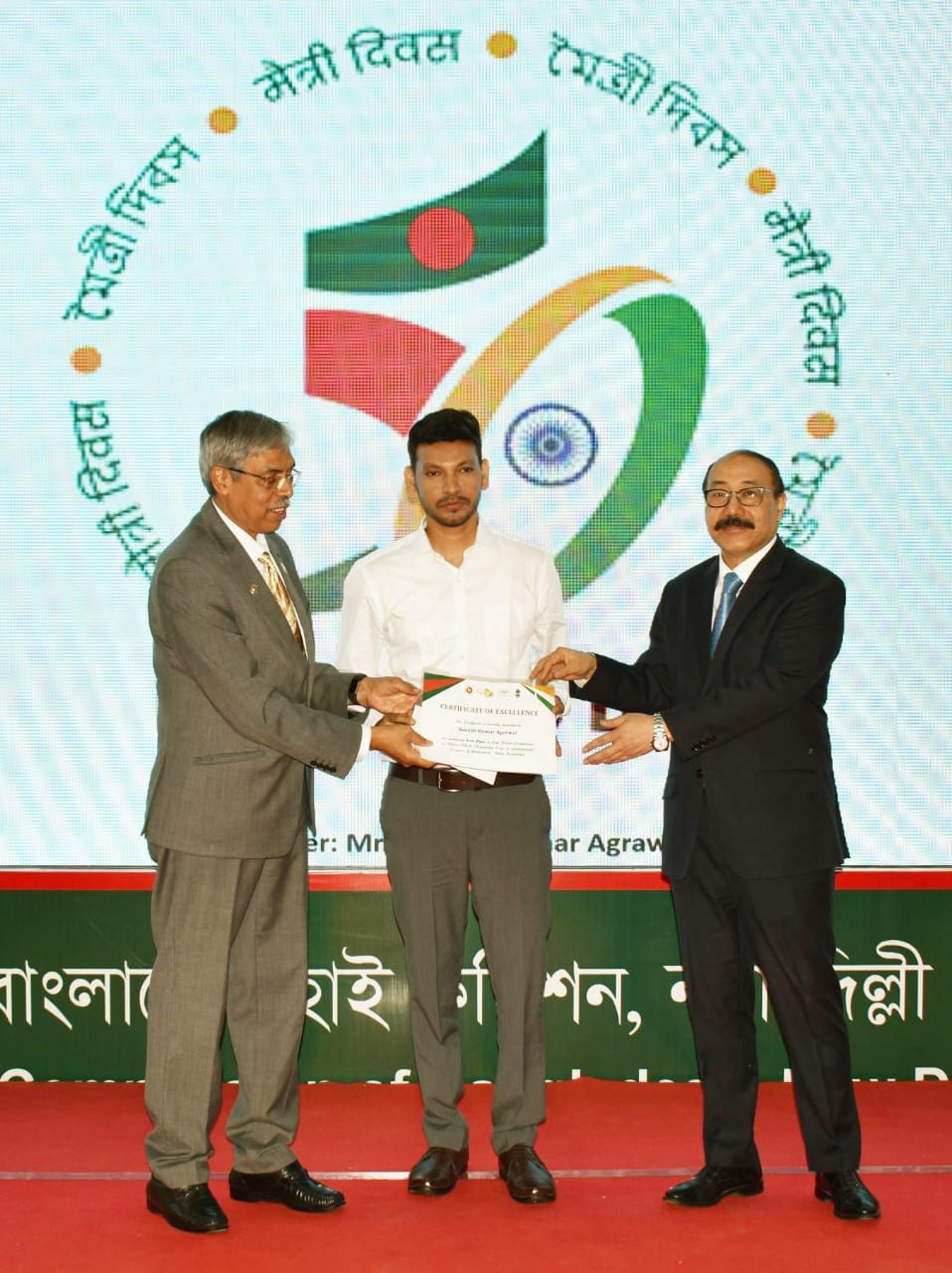 यह प्रतियोगिता भारत और बांग्लादेश के सभी नागरिकों के लिए दो श्रेणियों में लोगो डिजायन और बैकड्रॉप डिजाइन के लिए 31 अक्टूबर 2021 में ऑनलाइन प्रविष्टियां आमंत्रित की गई। 7 फरवरी 2022 को जारी हुए रिजल्ट में छतरपुर जिले के टटम गांव निवासी नरेश अग्रवाल द्वारा डिजायन किए गए लोगो को दोनों देशों की संयुक्त समिति ने पास करते हुए सर्वश्रेष्ठ के रूप में चुना। जिसके बाद विदेश सचिव हर्षवर्धन श्रृंगला और बांग्लादेश के उच्चायुक्त मुहम्मद इमरान ने 25 अप्रेल 2022 को भारत-बांग्लादेश मैत्री दिवस के अवसर पर आयोजित एक कार्यक्रम में प्रतियोगिता के विजेताओं को सम्मानित करते हुए इनामी राशि एक हजार डॉलर एवं प्रमाण पत्र देकर सम्मानित किया गया।